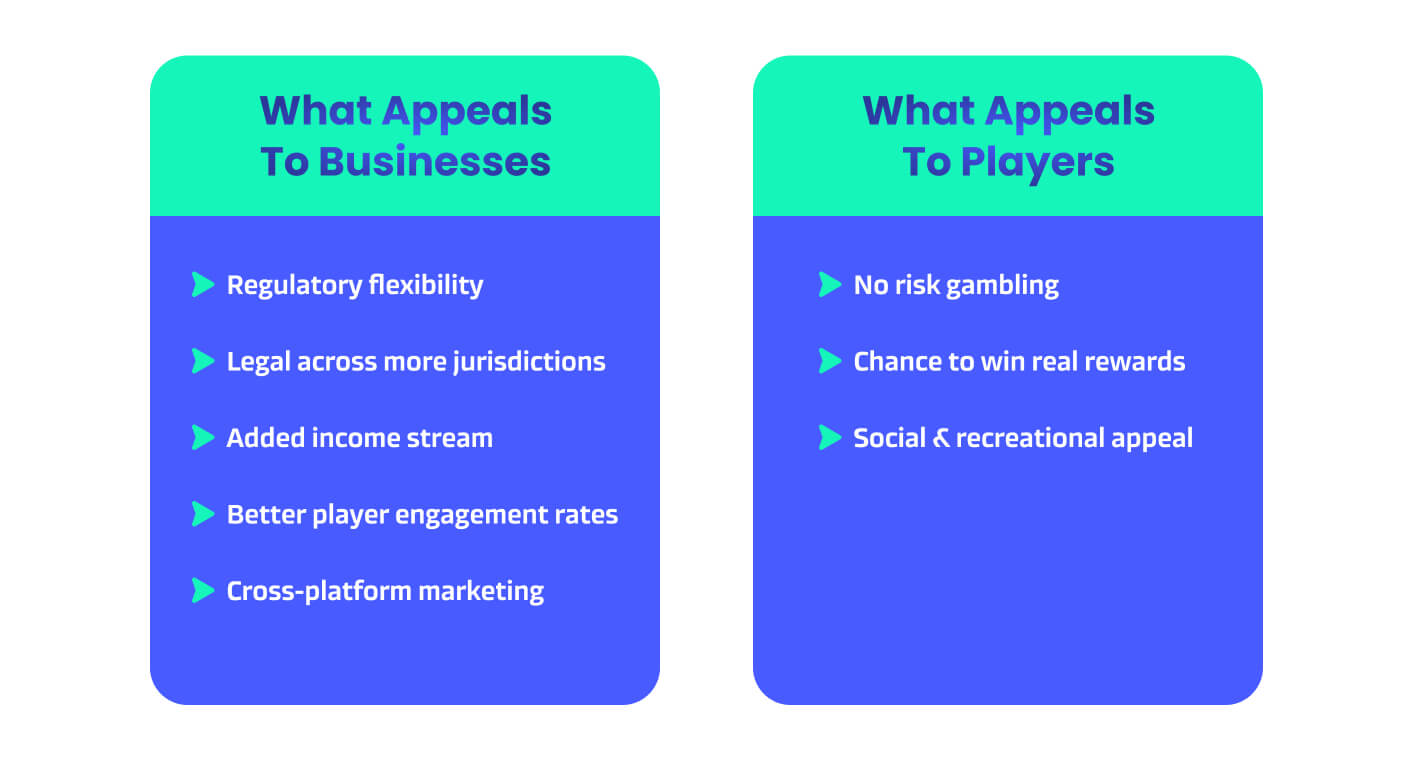 Operators can enter more jurisdictions compared to traditional online casinos because of the no-purchase-necessary model.